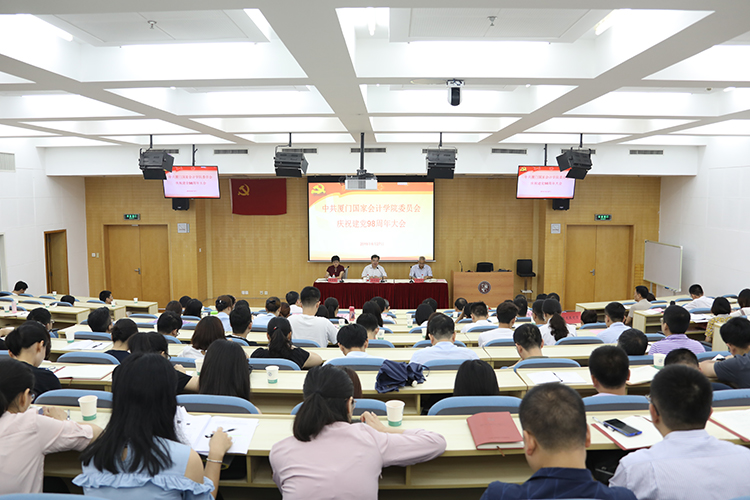 大会对先进基层党组织、优秀共产党员和优秀党务工作者进行表彰。黄京菁同志宣读了《中共厦门国家会计学院委员会关于表彰2018-2019年先进基层党组织、优秀共产党员和优秀党务工作者的决定》。其中,教务处党支部荣获“先进基层党组织”称号,陈粤闽、张建华、江日初、张世雄、周涛、王卓妮、刘妍玥荣获“优秀共产党员”称号,陈静、李谞媛荣获“优秀党务工作者”称号。