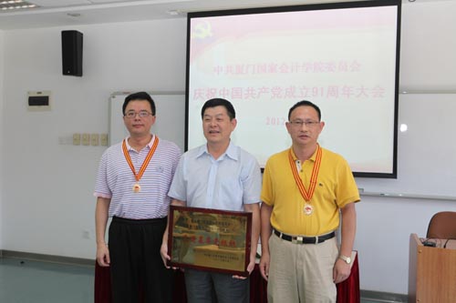 大会通报了《中共厦门市委市直机关工作委员会关于表彰2010-2012年度厦门市直机关创先争优活动先进集体和优秀个人的决定》。我院党委获“2010-2012年度厦门市直机关创先争优活动先进基层党组织”称号,蔡剑辉同志获“优秀共产党员”称号,王一平同志获“优秀党务工作者”称号。大会还宣读《中共厦门国家会计学院委员会关于表彰2010-2012年创先争优先进基层党组织和优秀共产党员的决定》。办公室党支部获“先进基层党组织”称号,余文华、严奇辉、黄京菁、颜江春、邓建平、林学颖和张建华等7人获“优秀共产党员”称号。李海滨副书记希望受表彰的先进集体和优秀个人,要珍惜荣誉,再接再厉,为学院事业的改革与发展再创新的业绩。同时希望学院各支部和广大党员要以受表彰的先进集体和优秀个人为榜样,继续深入开展创先争优活动,努力推进学院事业更好更快发展。