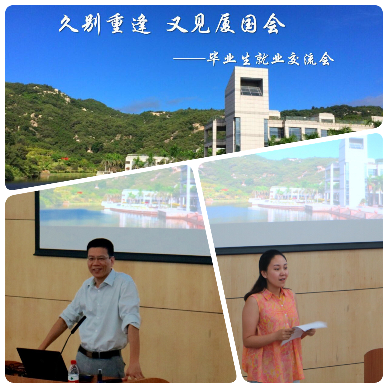 接下来,返校毕业生们与2015级、2016级在校同学在研究生楼126教室举行了就业交流会。厦门国家会计学院自2012年招生以来的五届研究生的代表们欢聚一堂,这在学院的历史上还是第一次。交流会由研究生处张冯老师主持,研究生处副处长邓建平、孟庆焱出席了本次交流会。