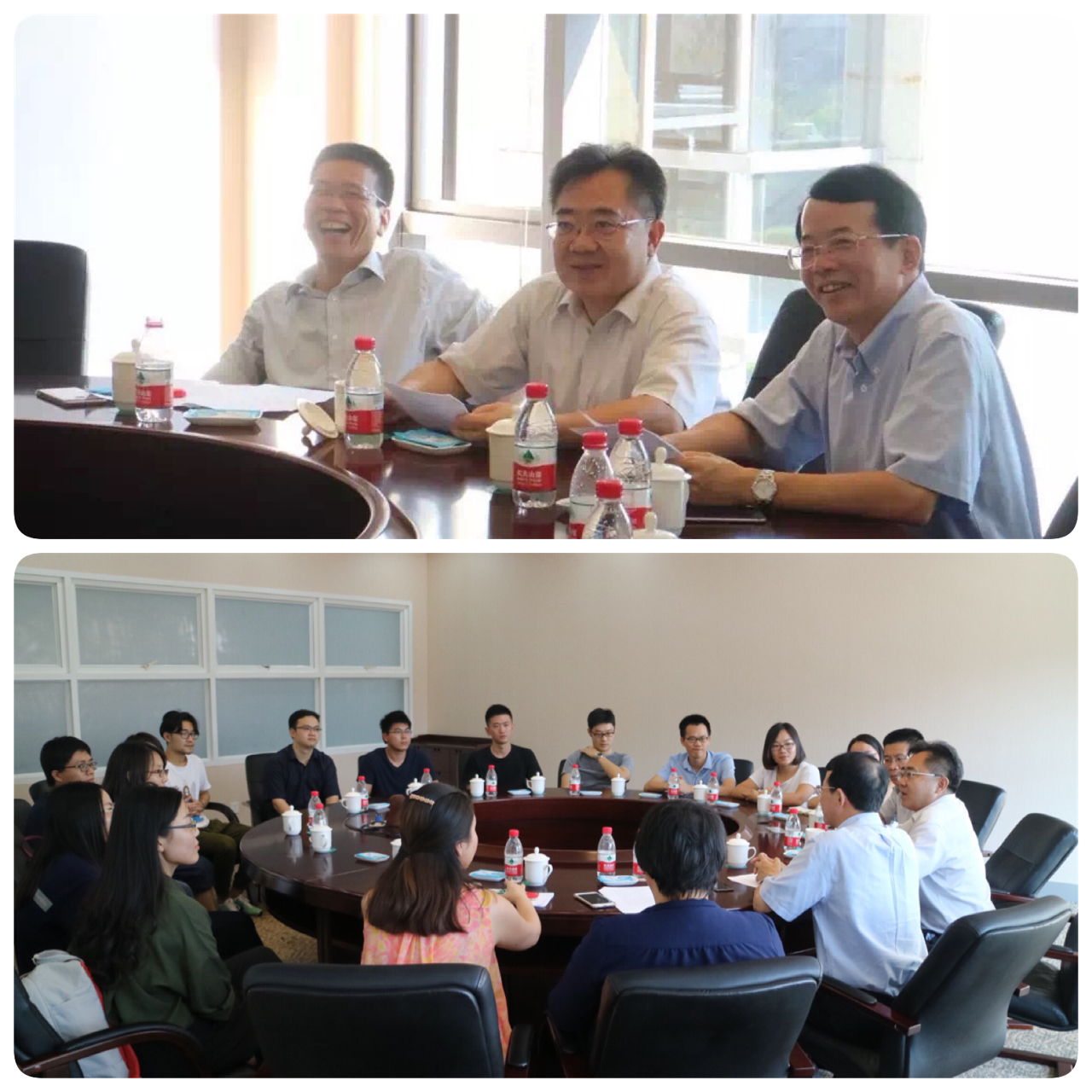 下午,在教学楼403会议室,学院党委书记刘光忠、院长黄世忠亲切接见了返院校友,并和他们进行了座谈交流。研究生处副处长邓建平、副处长孟庆焱和张冯出席了座谈。