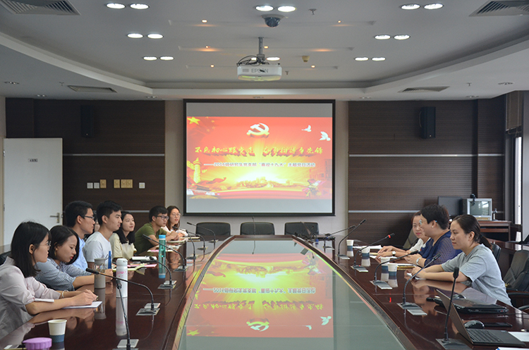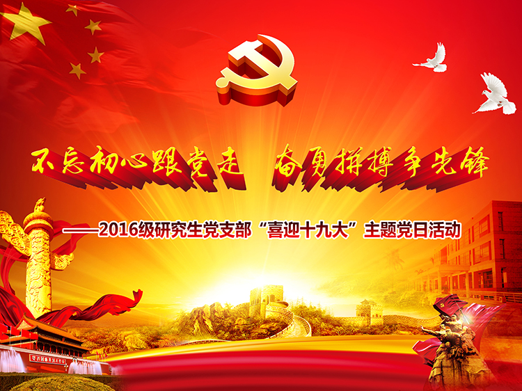 为庆祝中国共产党第十九次全国代表大会胜利召开,研究生处党总支组织2016级研究生党支部开展“喜迎十九大”主题党日活动“不忘初心跟党走,奋勇拼搏争先锋”。党日活动在教学楼409会议室举行,活动主要内容是组织研究生党员和积极分子收看十九大开幕会直播并进行学习讨论。2016级研究生党支部全体党员和积极分子参加了本次活动。党日活动由研究生处党总支书记孟庆焱主持。