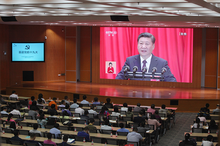 当屏幕画面切换到会议现场、习近平等党和国家领导人步入会场时,学术报告厅全场响起了热烈的掌声。在三个多小时的集中观看中,学员们用自己的热情和专注向本次大会致以了崇高的敬意。
