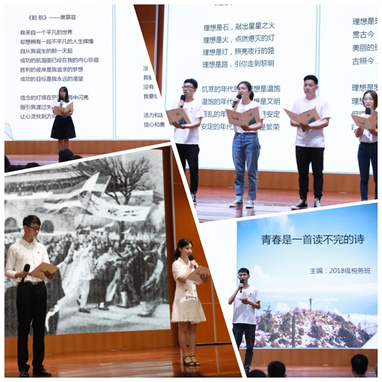 2018级会计班孟亚奇同学代表受表彰的团员发言,道出了他心中的新时代青年和新时期的“五四”精神,号召全体团员青年牢记习近平总书记的嘱托,增强“四个意识”,坚定“四个自信”,以“为实现中国梦而奋斗”为己任,传承和弘扬五四精神。