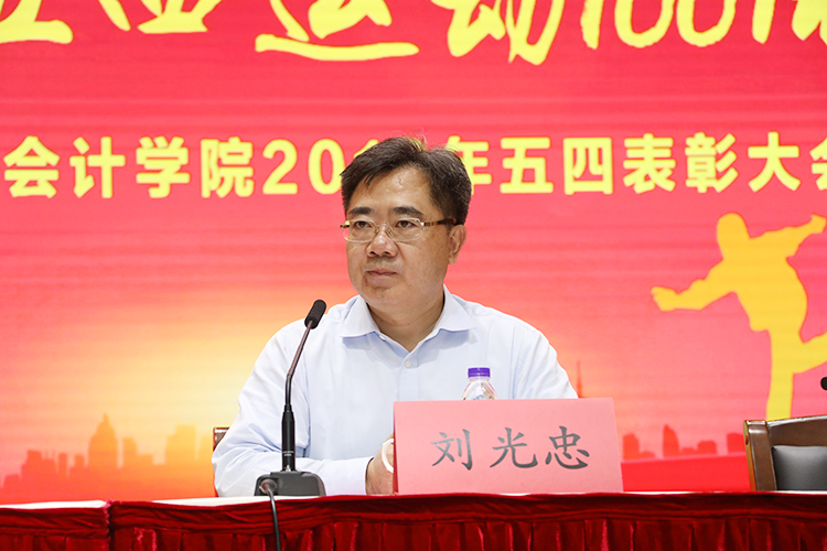 党委书记刘光忠同志在大会上作了重要讲话。他强调今天的表彰大会亦是学院纪念五四运动100周年的一堂特殊团课,通过树立和表彰先进,让五四精神深深融入广大青年的血液;通过不断赋予五四精神新的时代内涵,激励广大青年立鸿鹄志、做奋斗者,用实际行动践行五四精神!刘光忠书记向全院的青年提出三点希望:一是学院各级团组织要善于创新,团结青年为学院的发展贡献力量;二是学院青年教职员工要勇担历史使命,培养自身过硬的思想政治素质、精湛的业务能力和高超的育人水平,做学院创新发展的建设者;三是希望学院青年学生要爱国爱民、勇于担当,要勤学善思、求真力行,要奋发进取、顽强拼搏,争做勇于创新创造的新青年。