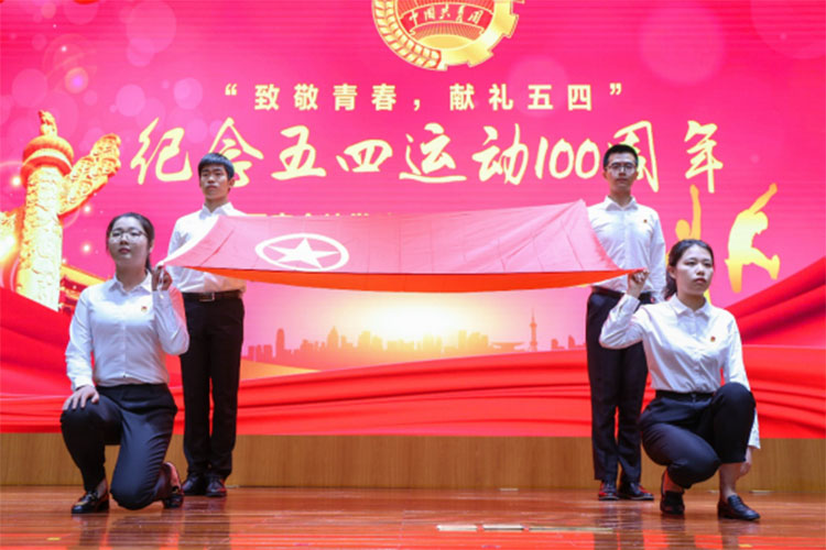 大会下半场“诵读青春”五四汇演在“致敬青春,献礼五四”的宣传视频中开启,青年团员们诵读和描绘了一代代有志青年的青春壮举。有先辈青年那“宁在战斗中死,不在奴役中生”的壮志豪情;有当代青年“用生命演绎爱的伟大,情之崇高”的奉献精神;也有伟大消防员战士“矢志坚守,逆火前行”的震撼;还有人民警察用生命奏响为人民服务的华章。