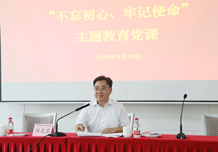 刘光忠同志围绕学习贯彻习近平总书记关于“不忘初心、牢记使命”重要论述,结合中国共产党98年来发展壮大的历程和新中国成立以来我们党带领人民创造出举世瞩目的成就,阐述了对初心使命丰富内涵的理解和体会。他指出,只有牢牢把握习近平新时代中国特色社会主义思想这条主线,坚持思想建党、理论强党,用党的创新理论武装头脑、指导实践,才能使我们每一名党员更加坚定自觉地为新时代党的历史使命而奋斗。