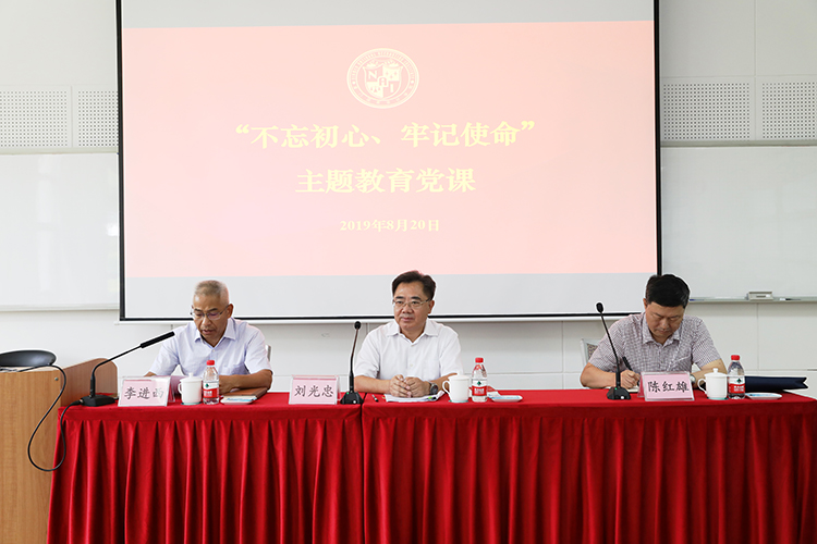 根据“不忘初心、牢记使命”主题教育有关工作安排,8月20日上午,学院举办“不忘初心、牢记使命”主题教育专题党课,学院党委书记刘光忠以“坚守初心、勇担使命,奋力开启建设‘国际知名会计学院’新征程”为主题讲授专题党课。财政部主题教育第二指导组副组长、财政部广东监管局党组成员、副局长陈红雄到会督导。
