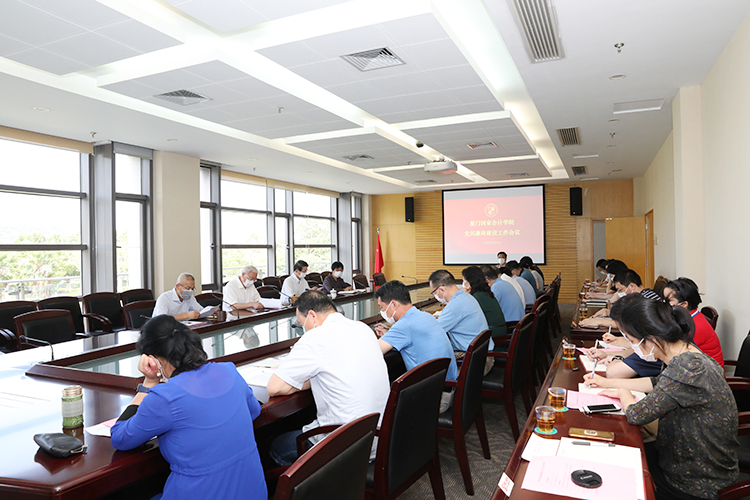 韩景义同志主持会议并作讲话。他强调,学院要认真学习贯彻习近平总书记关于深入推进党风廉政建设和反腐败斗争提出的新要求,准确把握、主动适应党中央全面从严治党的常态化要求,贯彻落实十九届中央纪委四次全会和全国财政党风廉政建设工作(视频)会议精神,不断增强政治自觉,以坚决的态度、有力的措施推进学院党风廉政建设再上新台阶。他指出,对照上级党组织要求,学院在全面从严治党和党风廉政建设方面仍存在一些不足和差距,具体表现在政治学习、工作作风、责任担当、廉洁自律等方面。他要求,2020年学院各级党组织一定要按照党中央和财政部党组、厦门市委的要求,把“严”的主基调长期坚持下去,重点抓好加强党的政治建设、落实全面从严治党责任、激励干部担当作为、加强执纪监督和作风建设、切实抓好意识形态建设、进一步强化纪委办职能作用等方面的工作,不断推动学院全面从严治党和党风廉政建设向纵深发展,奋力夺取疫情防控和学院全年高质量发展双胜利。