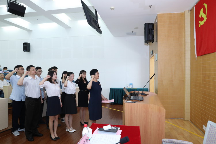 大会还举行了新党员入党宣誓仪式。在黄京菁同志的领誓下,新党员面对鲜红的党旗进行了入党宣誓。过红色政治生日的党员们也一同重温入党誓词。