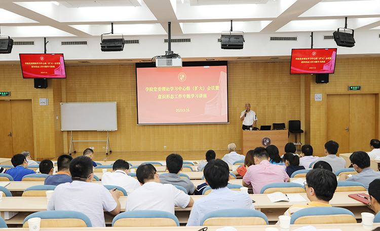 韩景义书记结合参加学习讲座的感受和学院工作实际,提出明确要求:一是要抓认识。要深刻认识意识形态工作的极端重要性和意识形态领域斗争的严峻性。要求学院各级党组织牢固树立“四个意识”,坚定“四个自信”,坚决做到“两个维护”,面对我国面临的百年未有之大变局和国际国内纷繁复杂的形势,必须落实落细意识形态的各项工作。二是要抓协调。要压实压紧党委主体责任以及各基层党组织工作责任,做到任务落实不马虎、阵地管理不懈怠、责任追究不含糊,落实意识形态工作责任制。三是要抓阵地。要重视意识形态工作学习教育;加强对课堂教学、科研项目、学术交流、各类思想文化阵地的管理;把握正确舆论导向,切实加强网络信息管理,维护好校园网络安全;旗帜鲜明坚持真理,提高底线思维,立场坚定批驳谬误。