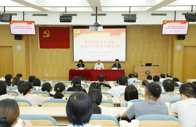 根据财政部党组部署安排,为深入推进党史学习教育,在庆祝中国共产党成立100周年前夕,学院党委书记韩景义同志围绕“知史爱党”主题,结合自身学习体会,以《深化党史学习、传承优良作风,汇聚推进“国际知名会计学院”建设的奋斗力量》为题,为全院师生党员讲党史学习教育专题党课。