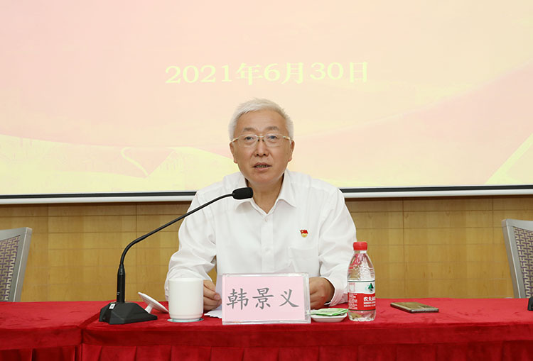 韩景义同志首先回顾了中国共产党成立100年来团结带领全国各族人民,经过艰巨卓绝的斗争,取得了革命、建设、改革的伟大成就,特别是党的十八大以来,以习近平同志为核心的党中央推动党和国家事业取得的全方位、开创性历史成就,发生的深层次、根本性历史变革。