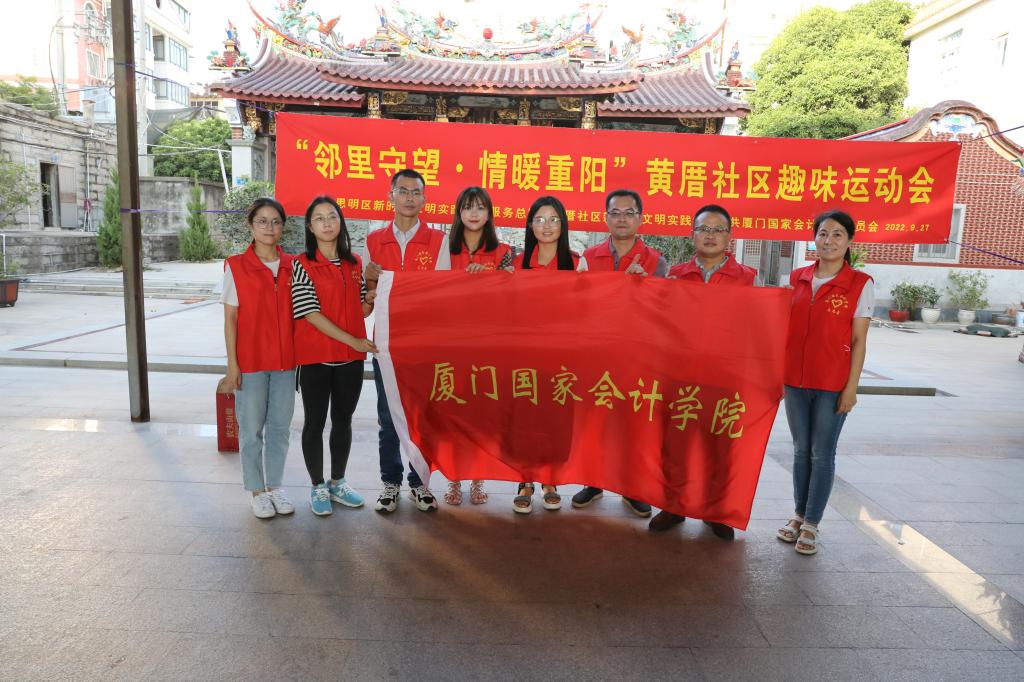 在2022年重阳节即将来临之际,为进一步发挥党建引领作用,践行“我为群众办实事”要求,大力弘扬尊老敬老、爱老助老的优良传统,丰富老年人晚年的精神文化生活,学院走进黄厝社区组织开展“邻里守望 情暖重阳”趣味运动会。