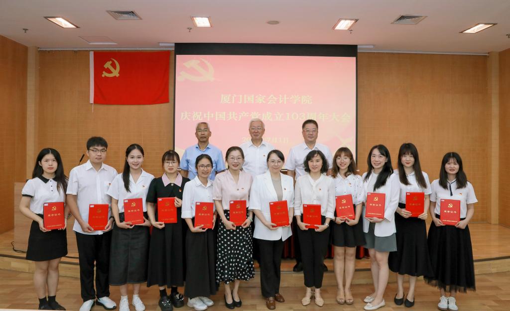 为庆祝中国共产党成立103周年,深入学习贯彻习近平新时代中国特色社会主义思想,进一步推进党纪学习教育走深走实,不断加强党组织的凝聚力和战斗力,7月1日下午,厦门国家会计学院召开庆祝中国共产党成立103周年暨“七一”表彰大会。学院党委书记韩景义出席会议并讲话,学院党委副书记、副院长丁友刚主持会议,党委委员、副院长李进西和在校的全体师生党员、退休党员代表、入党积极分子等参加会议。