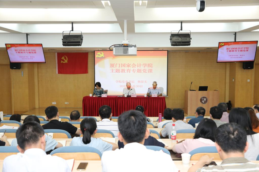 2023年“七一”建党节前夕,根据财政部党组部署和厦门国家会计学院学习贯彻习近平新时代中国特色社会主义思想主题教育有关工作计划安排,学院党委书记、主题教育工作领导小组组长韩景义同志以“深刻把握习近平新时代中国特色社会主义思想的世界观和方法论,加快推进学院‘十四五’时期高质量发展”为主题,结合自身学习体会和学院工作实际,为全院师生党员讲主题教育专题党课。
