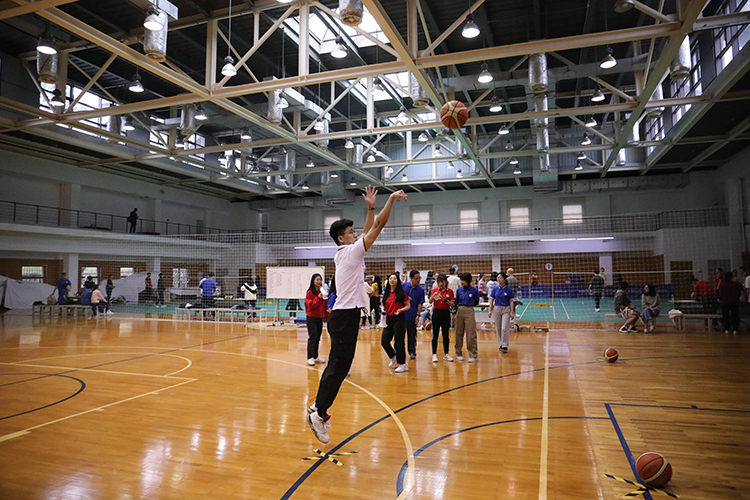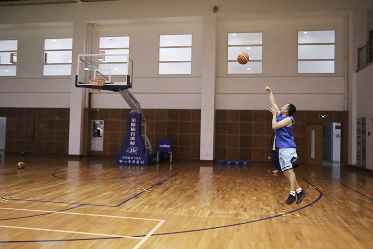 篮球场上,选手们个个动作标准,屈膝、伸臂、压腕,身体随着动作轻轻跃起,手中的篮球在空中划出一道美丽的弧线,精准地进入到篮筐中。场下,掌声、欢呼声此起彼伏。