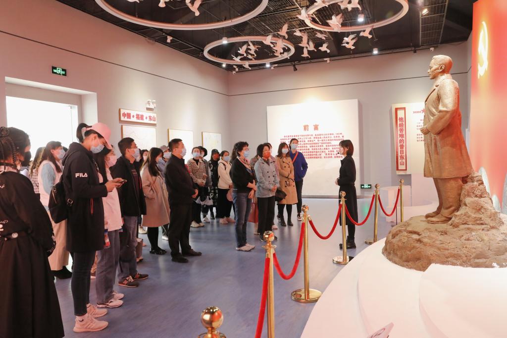 走进纪念馆,在讲解员的带领下,大家聆听着党的好儿女、人民的好书记谷文昌同志为党为人民奋斗终生的感人事迹。1950年到1964年间,南下干部谷文昌面对恶劣的自然环境,带领东山人民奋勇作战、矢志不移,植树造林、根治风沙,从根本上改变了东山的生态环境。展馆共有“走进东山”、“执政为民”、“艰苦奋斗”、“求真务实”、“致力发展”、“绿色丰碑”、“永久怀念”等七大展区。一幅幅珍贵的历史图片,一件件朴素的故人实物,一个个鲜活的感人故事,诉说着谷文昌在东山的奋斗岁月,展现了他坚定不移的信念追求,为民担当的公仆情怀,造福一方的责任意识,清正廉洁的高尚品格,更让大家真实感受到了东山发生翻天覆地变化的历史进程。