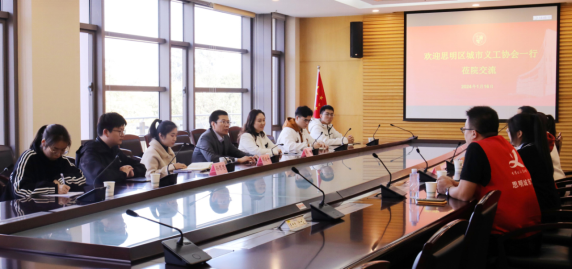 交流会上,邓建平对思明区城市义工协会一行人的到来表示热烈欢迎,在简要介绍了学院的成立背景等情况之后,感谢协会为学院青年团员提供了良好的志愿服务平台,同时表达了加强志愿服务合作的意愿。